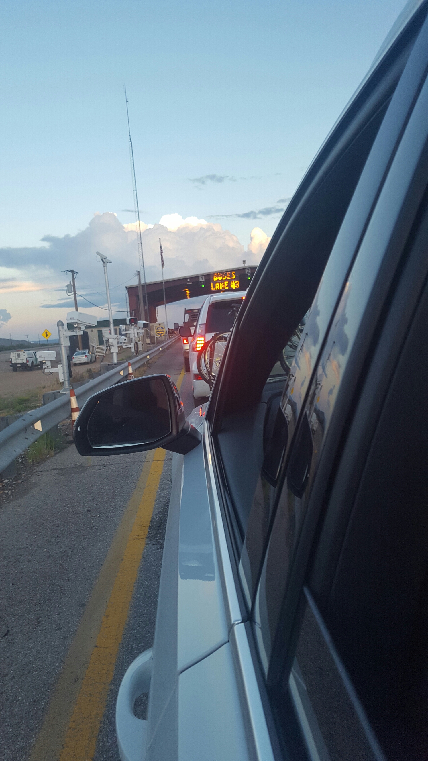 The way the check point is set up is like you’re taking an exit and the free way is still open, you just have construction cones guiding you. While we were waiting in the long line; a car just goes strolling by the checkpoint. They kept hitting their brakes and weren’t taking off so we figured it was someone who worked there. Next thing we know four border patrol officers sprint to their cars and take off, spinning tires. As we exit the checkpoint we see the officers had pulled over the little car, to our astonishment it was a little old lady. We had a good laugh for the next few miles.