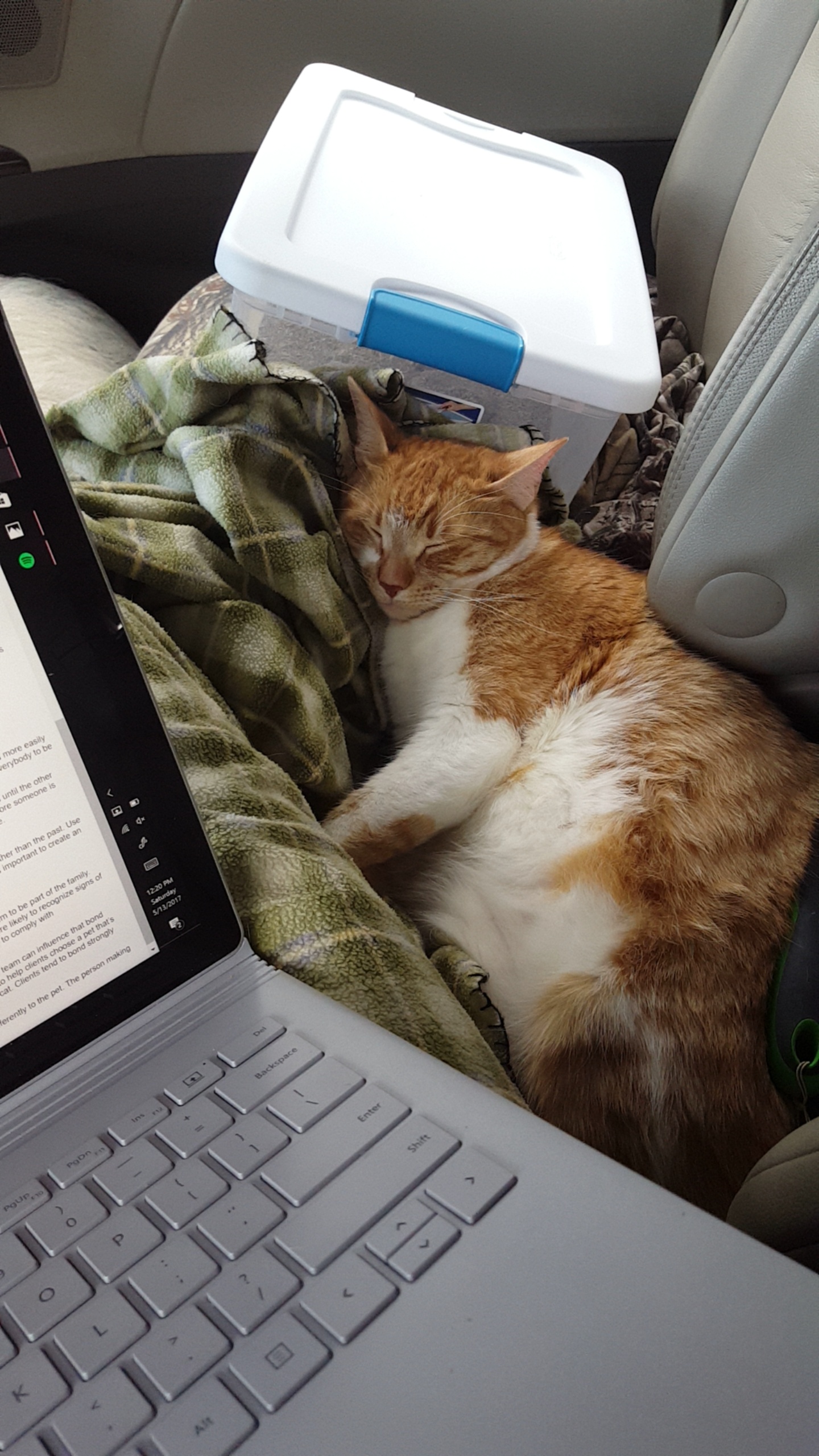 I’m also so proud of Teddy and how well he is doing… when we were first in the car he would not stop meowing in his carrier.. so I let him out thinking he needed to go to the bath room. But he just got out and laid in the blankets, he is adorable.